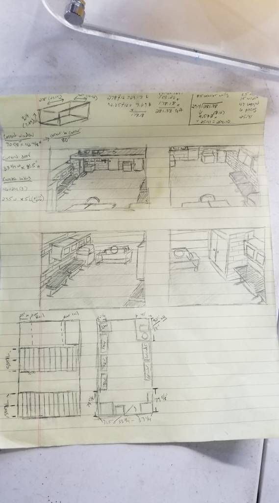 I started with a rough drawing of what I wanted it to look like and from there I planned out what I wanted to do with the shop and in what order. I very well couldn’t afford to hire someone to come in to gut everything and to sheetrock/finish the walls. (That was the initial plan…was to sheetrock)
